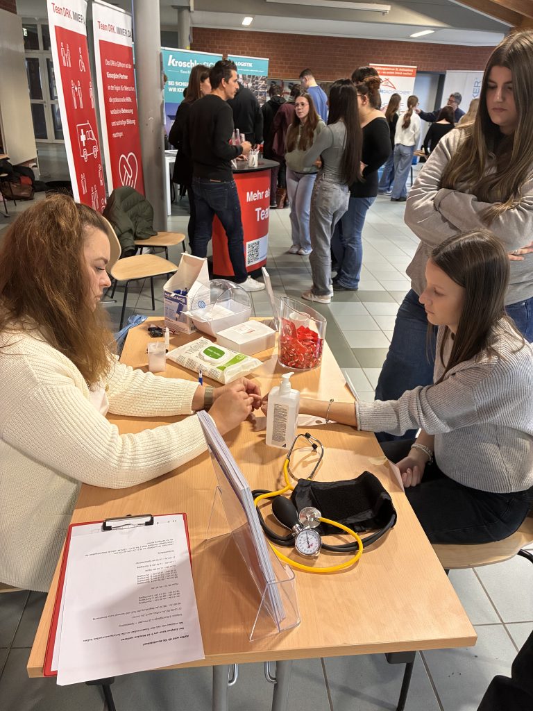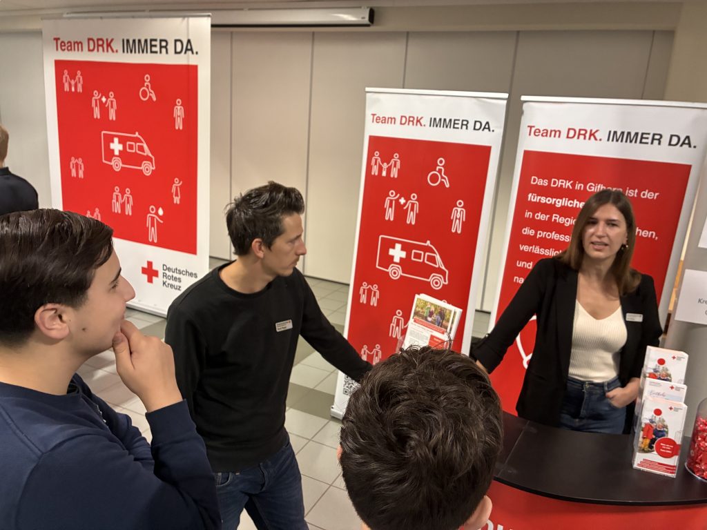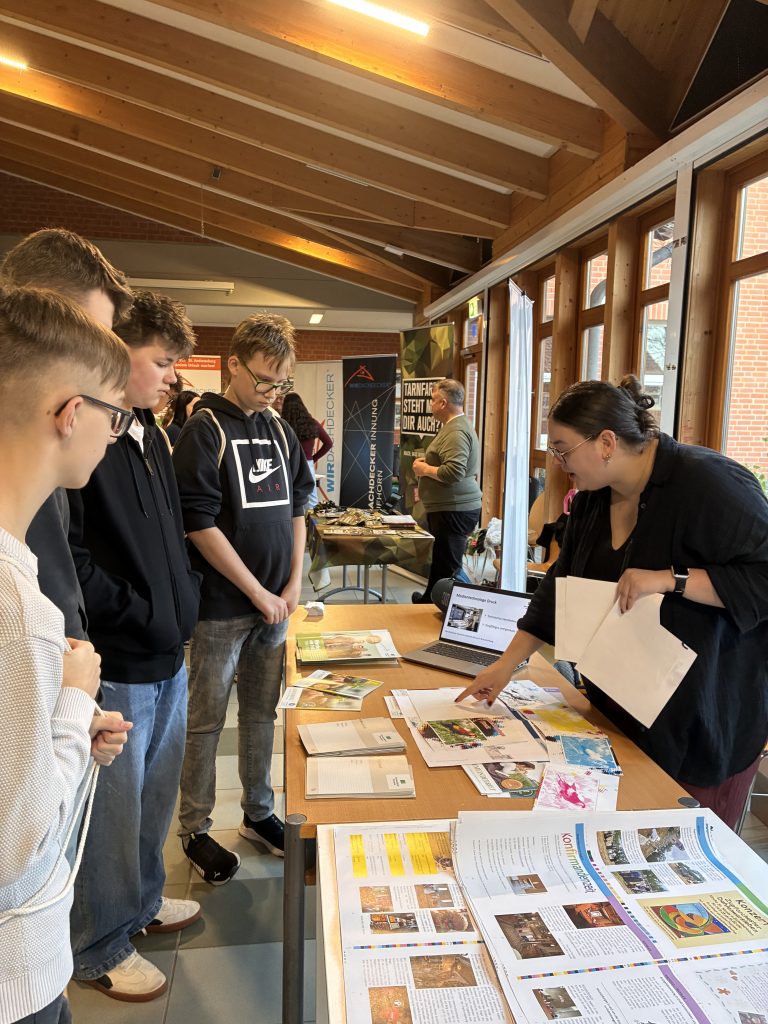 Zehn Arbeitgeber aus der Region stellten sich den Fragen der Schülerinnen und Schüler und informierten über ihre Ausbildungsmöglichkeiten. Außerdem gab es vielfältige praktische Aufgaben, die die Schülergruppen bewältigen mussten. Dabei waren die Bundeswehr, die Dachdeckerinnung, Asche Logistik, VW, Kroschke, die Gemeindeblatt Druckerei, das DRK mir Altenpflege und Jugend und Sozialem, Dr von Morgenstern Schulen und LSW Stadtwerke.